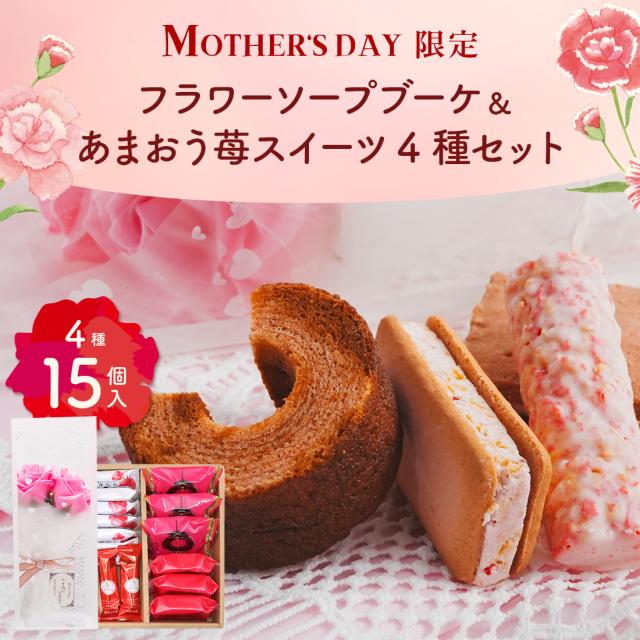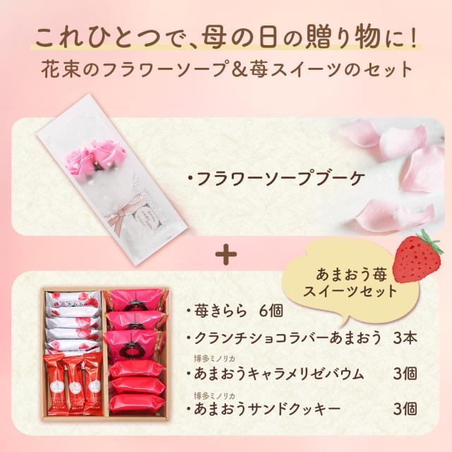 母の日 ギフト フラワーソープブーケとあまおう苺スイーツ4種アソート |花 プレゼント ギフト 贈り物 送料無料<宅急便発送> Agift