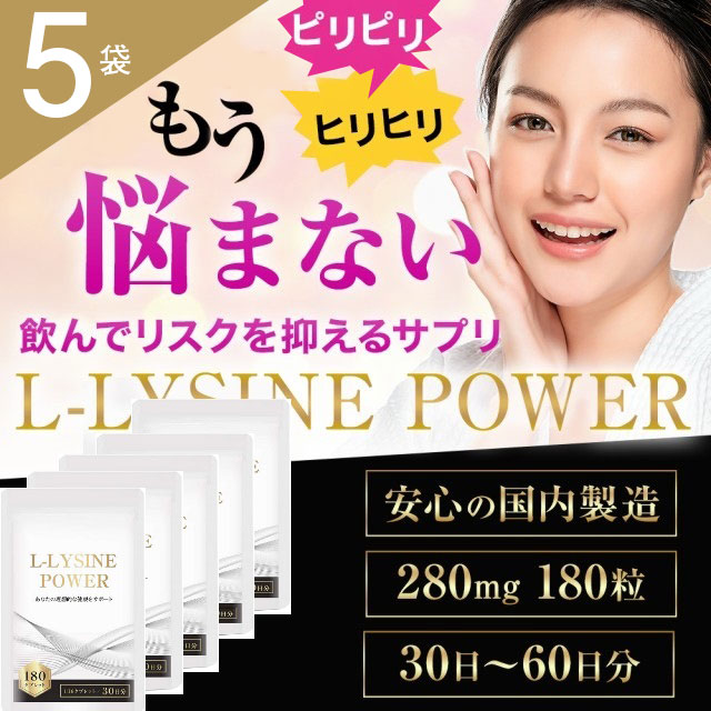 送料無料 リジン サプリメント アミノ酸 Lリジン 1日1500mg配合 国内製 L-LYSINE POWER 健康 サプリ5個セット