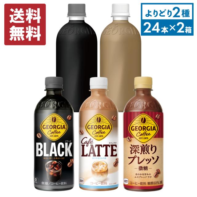 コーヒー ジョージア ブラック カフェラテ 選べる よりどり 440ml 500ml ペットボトル 24本×選べる 2箱 計48本【送料無料】