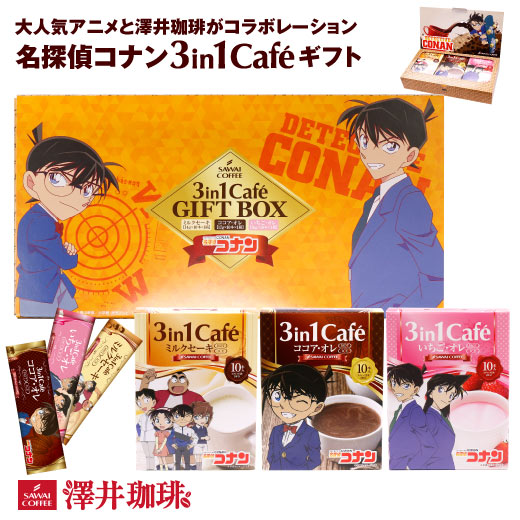 【澤井珈琲】混ぜるだけで 本格カフェ 名探偵コナン スティックカフェ ギフト 3箱 セット (3in1/インスタント)