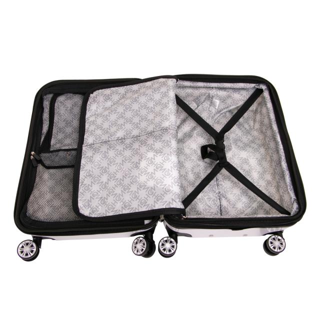 使いやすさ抜群のトップオープンキャリー。機能性とデザイン性の両方を兼ね備えたスーツケースになりました。シンプルなデザイン、ベーシックなカラー展開なので男女問わずお使い頂けます。トップオープンポケットの中仕切りはまとめてボタンで留めることができてポケットを広くすく事ができるので用途に合わせてお好みの使用方法が可能。内装やファスナー引手など細部にまで「HeM」をあしらったデザイン。