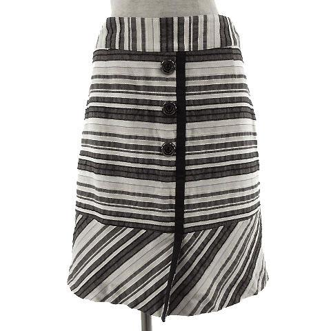 【中古】アニープラス anni plus スカート ひざ丈 フレアー ボーダー オフ白 ホワイト グレー 黒 2 レディース
