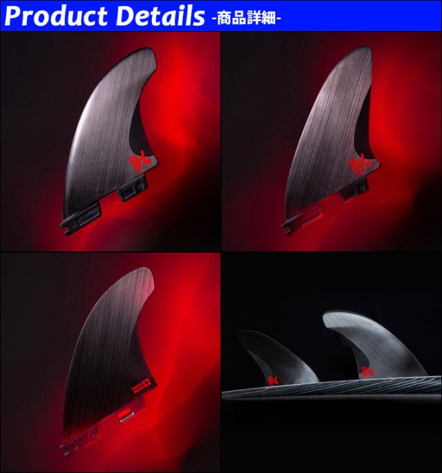 テンプレートに施された物理的要素やマテリアルとフォイルの関係は複雑に合成され、このフィンの全構成の工学的な想像はフィン、サーフボード、ライダーそして波にシンプルな相乗効果を及ぼします。