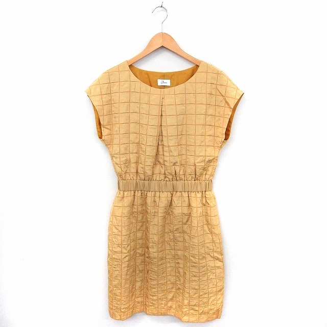 【中古】アーバンリサーチ ドアーズ URBAN RESEARCH DOORS ワンピース チェック 丸首 フレンチスリーブ ロング ONE 黄