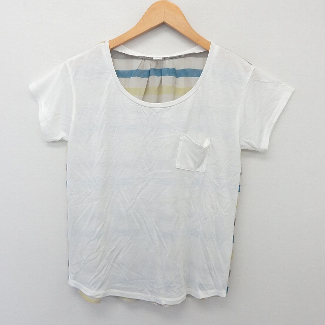 【中古】レディラックルカ LADY LUCK LUCA カットソー Tシャツ 半袖 透け感 ポケット 切替 ホワイト /ST44 レディース