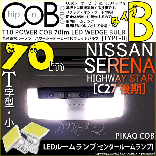NISSAN SERENA HIGHWAY STAR[C27 後期モデル]対応センタールームランプ用 LEDバルブ T10 COB 70lm POWER LED WEDGE BULB [TYPE-B] 形状:T字型 LEDカラー:ホワイト 1セット2個入り | |||