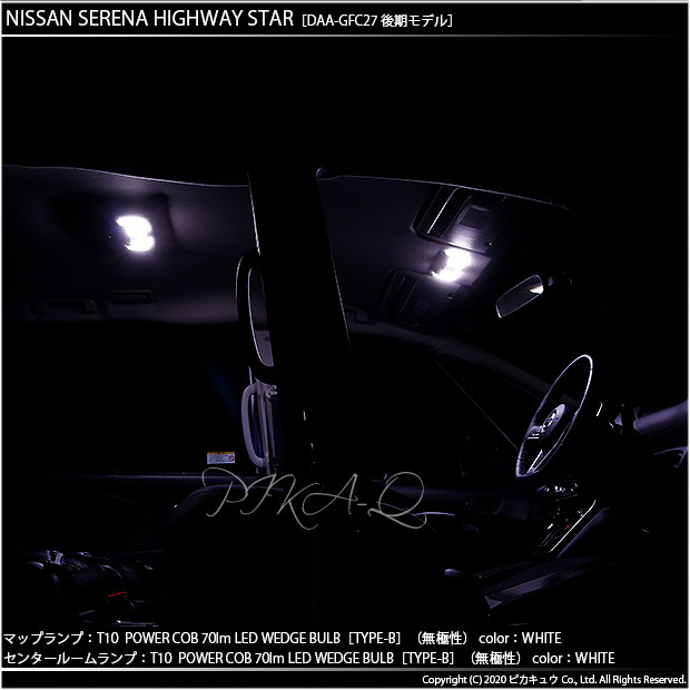 | ピカキュウ,LED専門店,LEDバルブ,COB,シーオービーチップオンボード,LED,SMD,T10ウェッジ,ハイブリッド車対応LEDバルブ,明るさ70ルーメン,定電流回路搭載,フロントマップランプ,ホワイト,ニッサン,NISSAN,セレナ,NISSAN SERENA,C27系,後期 |
