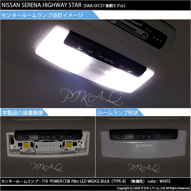 ニッサン セレナ ハイウェイスター (C27系 後期) 対応 LED センタールームランプ T10 POWER COB 80lm ウェッジ DAA-GFC27 (タイプB) 白 2個 4-B-7