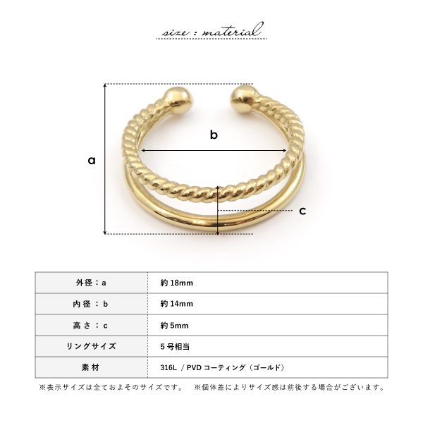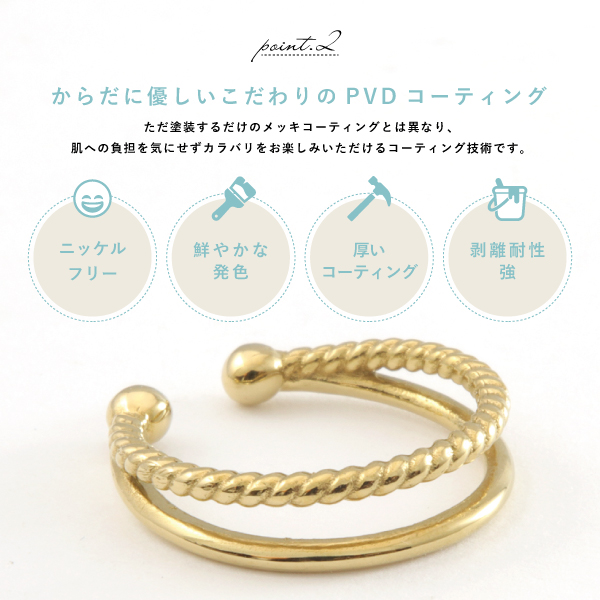 イヤカフ イヤーカフス ウェアリング ステンレス サージカルステンレス 医療用ステンレス 金属アレルギー アレルギーフリー 316L ひねり 指輪 リング シルバー ゴールド 片耳用 メンズ レディース こなれ カジュアル オケージョン