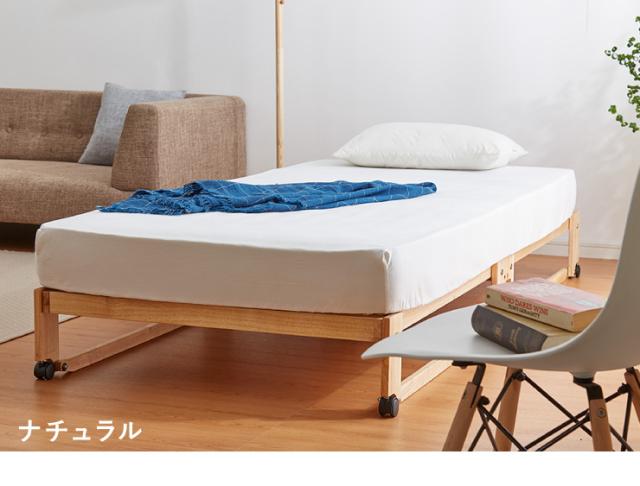 ベッドを広げた時には最下点の木部フレームよりもキャスターの最下点が若干浮くように設計しております。その為、キャスターの跡が畳にクッキリ残ったりすることなく、どのような床面でも傷が付きにくい商品となっております。