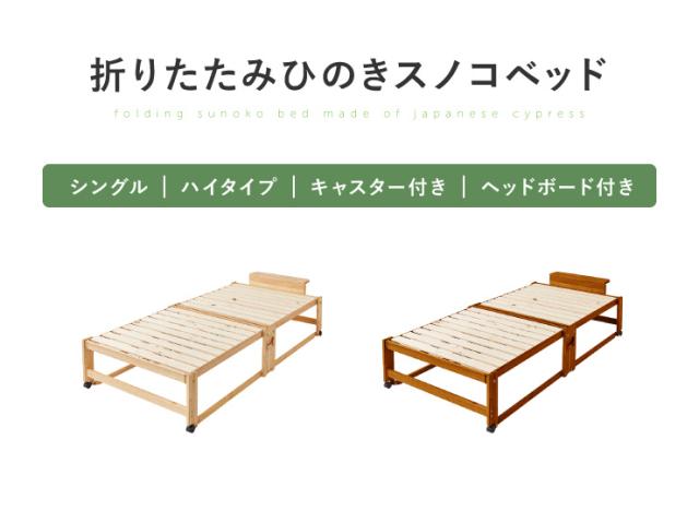 中居木工 日本製 折りたたみ すのこ ベッド ひのき ハイタイプ シングル 木製 ヒノキ 檜 スノコ 天然木 コンパクト 省スペース(代引不可)【送料無料】