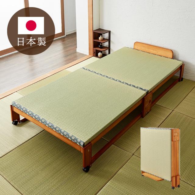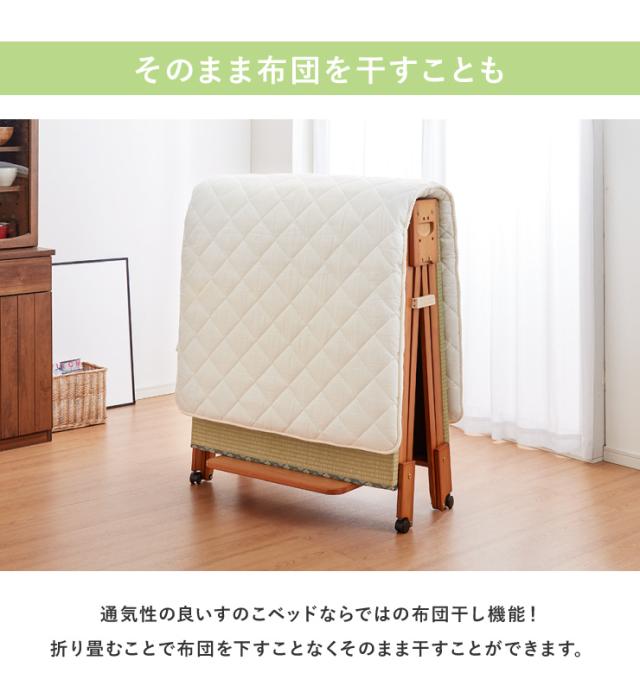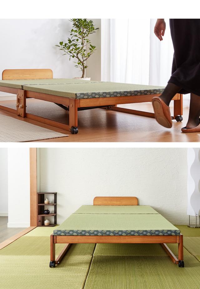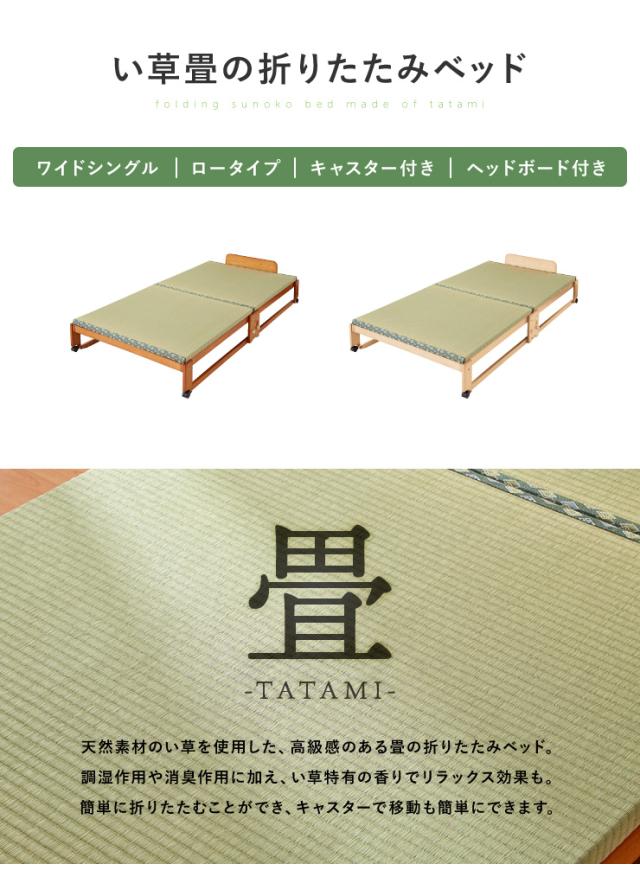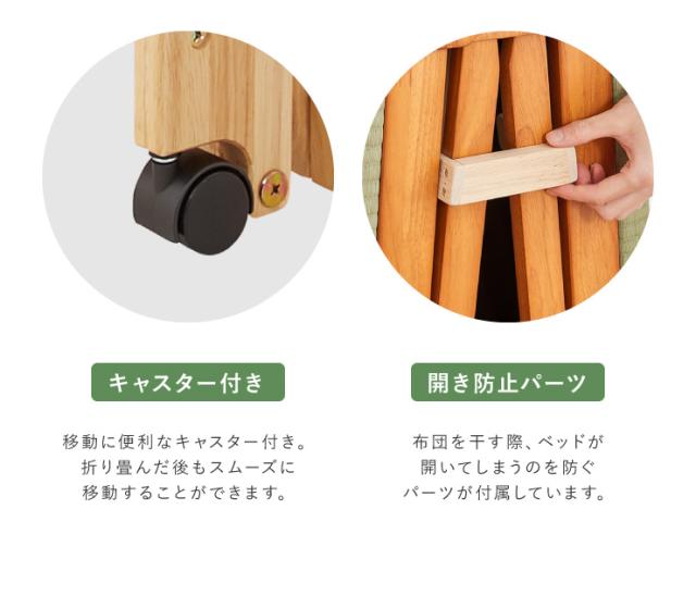 中居木工 日本製 折りたたみ 畳 ベッド ひのき ロータイプ ワイドシングル 和風 木製 ヒノキ 檜 スノコ 天然木 コンパクト 省スペース キャスター付き【送料無料】