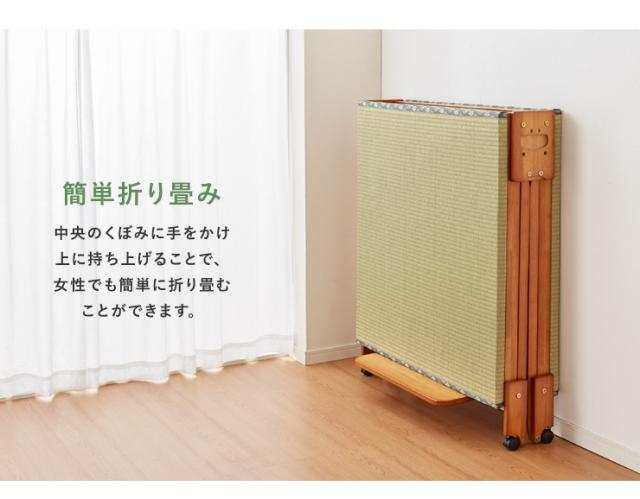 [4] 折りたたみ時にはお布団をかけたままキャスターを使って自由に移動させることができますので、日光の当たる部屋から部屋へ移動させることができます。