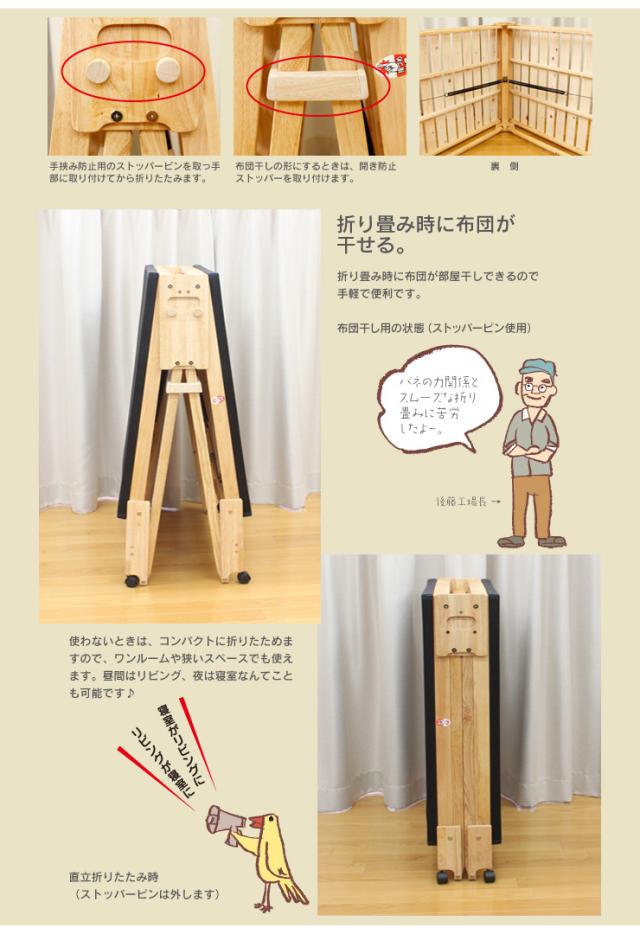 [4] 折りたたみ時にはお布団をかけたままキャスターを使って自由に移動させることができますので、日光の当たる部屋から部屋へ移動させることができます。