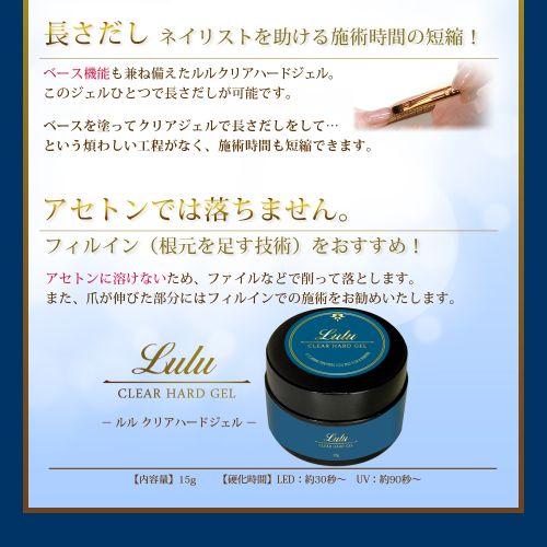 ジェルネイル ハードジェル 大容量 15g クリアジェル エクステンション ルルジェル ベース クリア トップコート ネイル アート