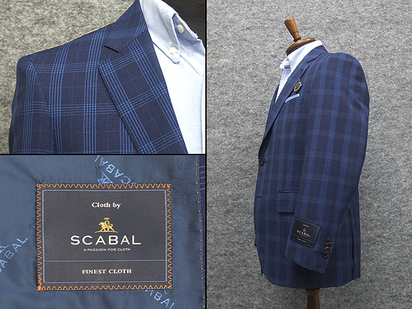 春夏物ジャケット [SCABAL] スキャバル オーダー生地使用 ベーシック2釦 紺系チェック [A体][AB体] SCB-J52