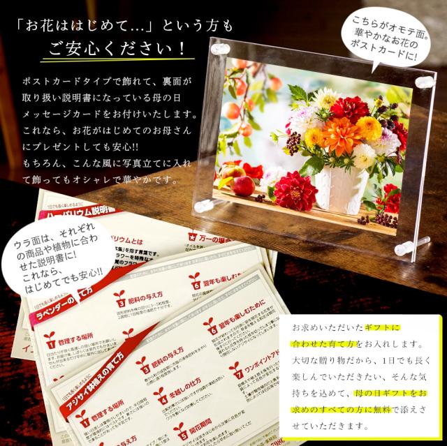 また、他の商品との同梱ができません。母の日ギフト以外の商品を、一緒に買い物かごに入れないようにご注文をお願いいたします。