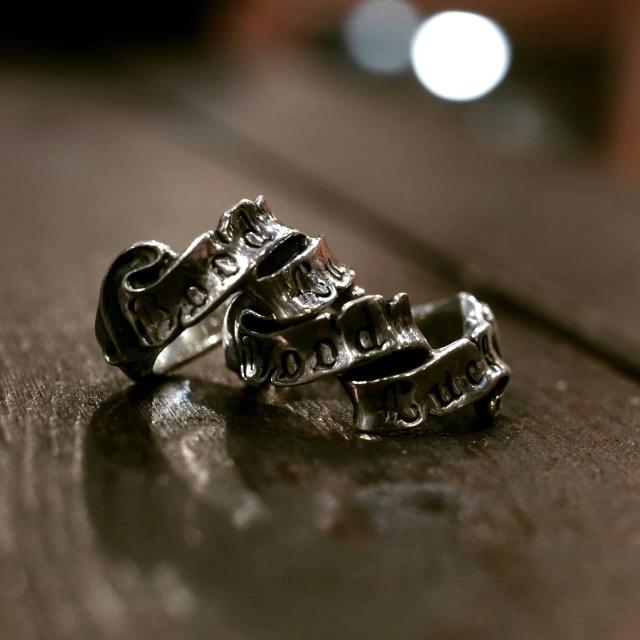 ロックテイストに溢れたリボンにオールドイングリッシュで『Good Luck』のメッセージが刻まれています。