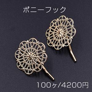 ポニーフック ヘアアクセサリー 座金付 透かしフラワー 30mm【100ヶ】