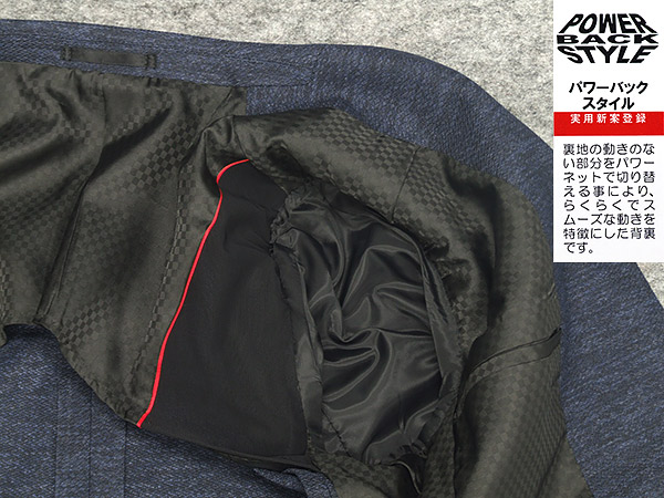 パワーネットの裏地とウエストマジックで「動けるスーツ」になっています。