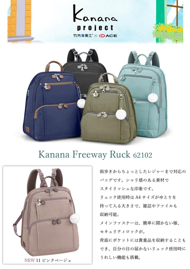 リュック エース カナナプロジェクト フリーウェイリュック 11L 590g A4収納 レディース 軽量 旅行 デイバッグ 通勤 通学 セーフティロック付き ナイロン 撥水 おしゃれ 62102