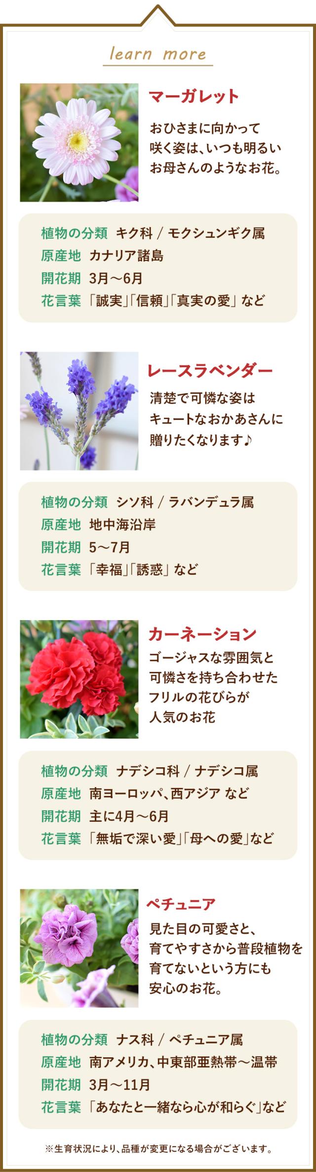 (カーネーション・マーガレット・レースラベンダー・ペチュニア)