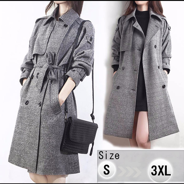【S/M/L/XL/2XL/3XL】トレンチコート スプリングコート アウター レディース コート ロングコート 春アウター カジュアル ベルト付き 大きいサイズ 膝下 ジャケット 着やせ 入学式 通勤 ロング丈 防寒 シンプル 無地 高品質 グレーda320zezezb