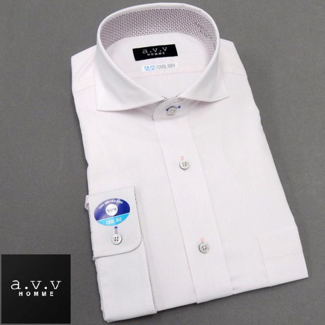 ■a.v.v■七分袖ドレスシャツ■ピンク/ドビー杉綾■ホリゾンタルカラー■COOL DRY■形態安定■COOL BIZ■avv7-15