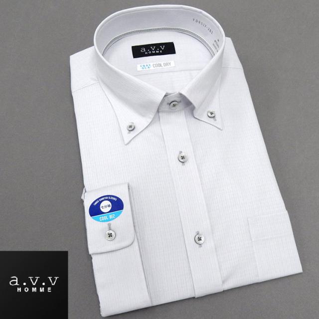 ■a.v.v■七分袖ドレスシャツ■ライトグレー/ドビーストライプ風織柄■ボタンダウン■COOL DRY■形態安定■COOL BIZ■avv7-17