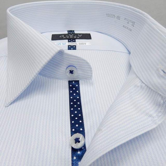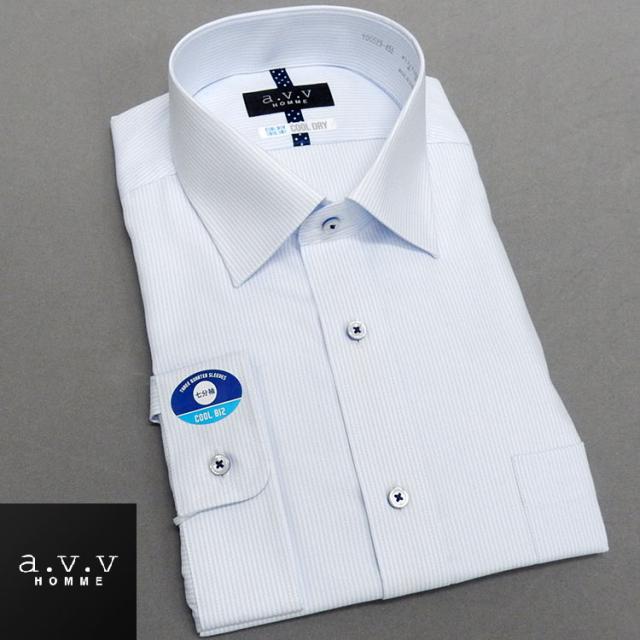 ■a.v.v■七分袖ドレスシャツ■ライトブルー×白/ドビーストライプ■ワイドカラー■COOL DRY■形態安定■COOL BIZ■avv7-20