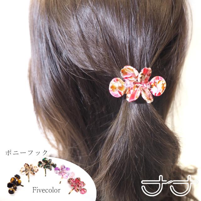 送料無料 ポニーフック ヘアフック ヘアアクセサリー レディース 差しこむだけ 花 マーブル柄 べっ甲柄
