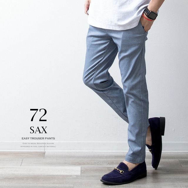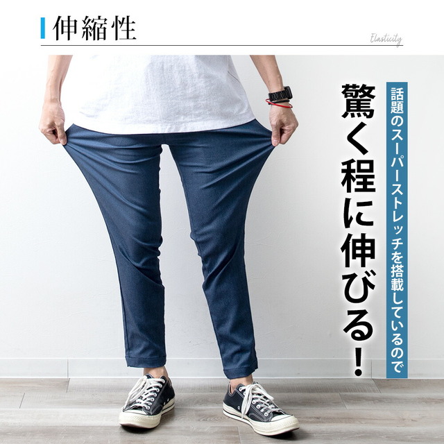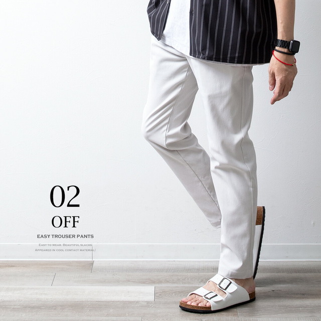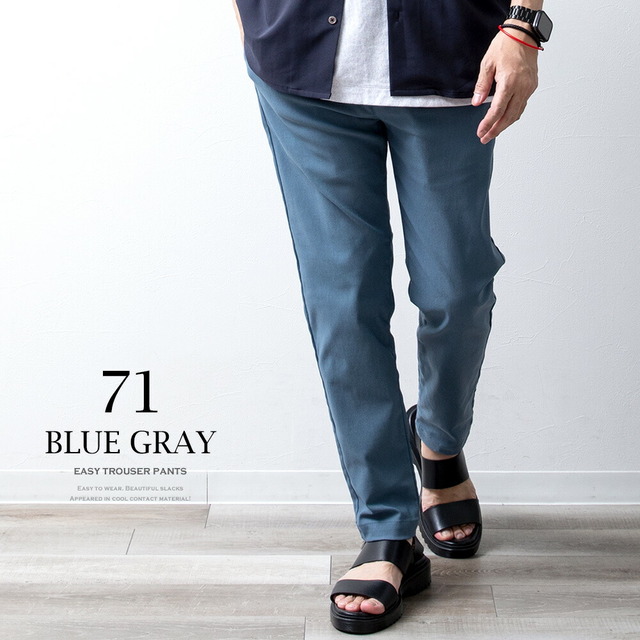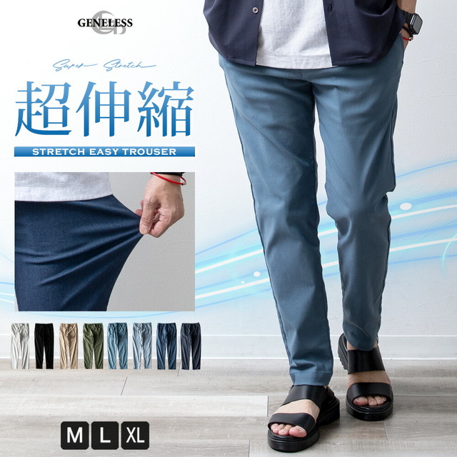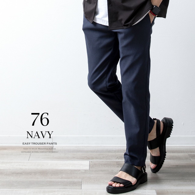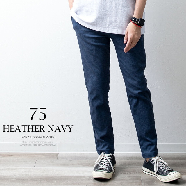 イージーパンツ メンズ パンツ 接触冷感 ストレッチ スラックス ロングパンツ ゆったり 洗える 涼しい スリムパンツ ヘザーネイビー 無地 シンプル ホワイト プレゼント