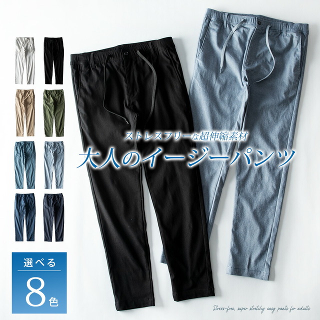 イージーパンツ メンズ パンツ 接触冷感 ストレッチ スラックス ロングパンツ ゆったり 洗える 涼しい スリムパンツ ヘザーネイビー 無地 シンプル ホワイト プレゼント 春夏 スキニー ビジネス ネイビー カーキ ブルーグレー 黒 全8色 おしゃれ