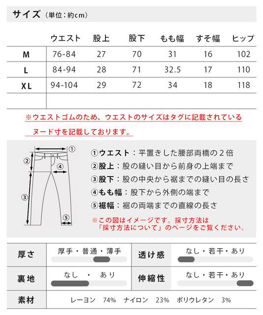 | サイズ | ウエスト | 股上 | 股下 | もも幅 | 裾幅 | ヒップ |