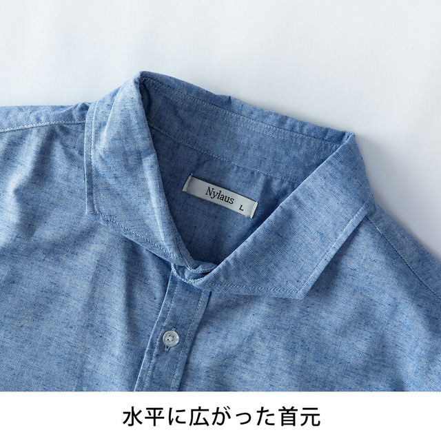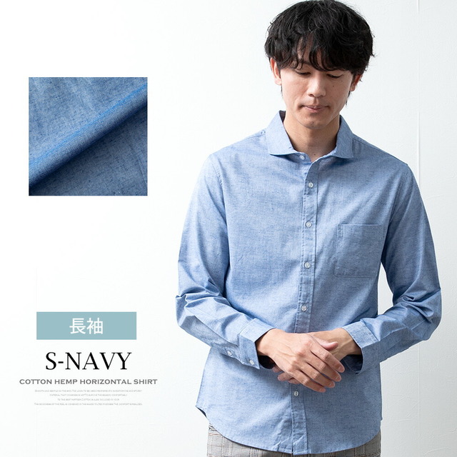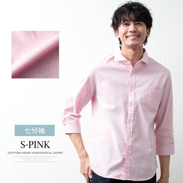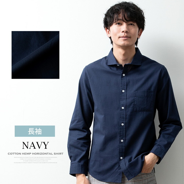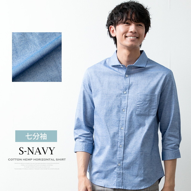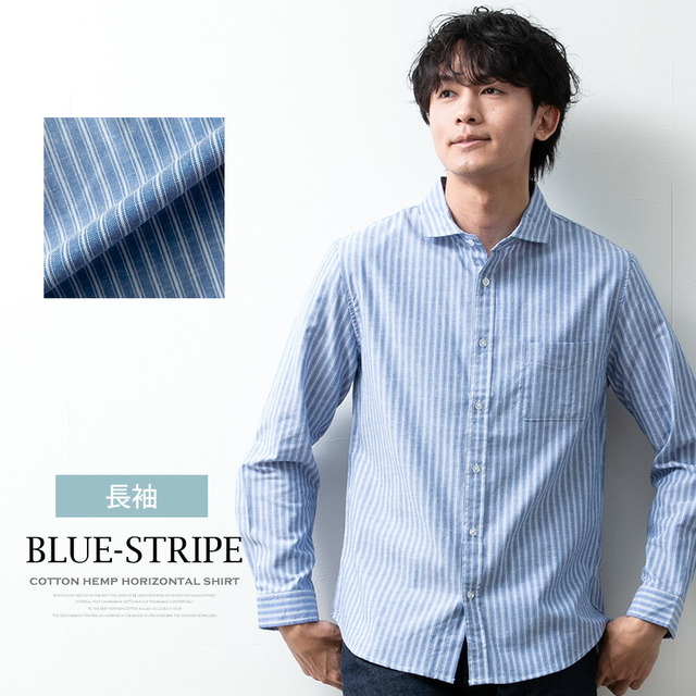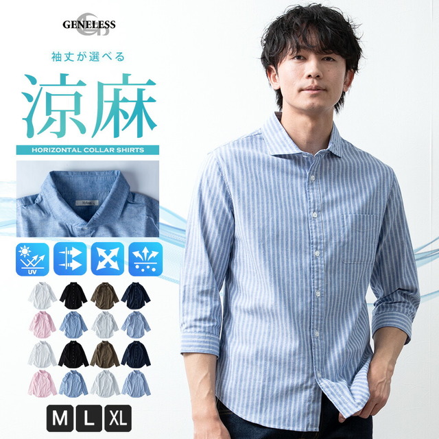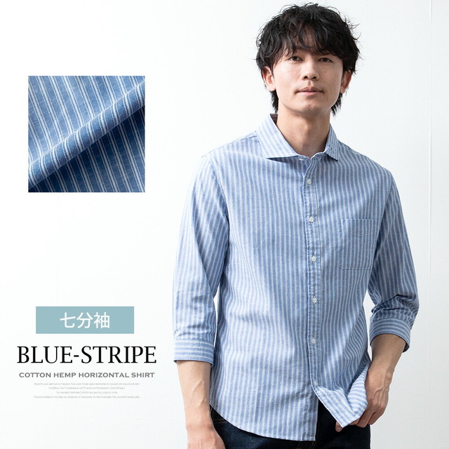メンズ シャツ 長袖 7分袖 リネン おしゃれ 春 夏 涼しい 綿麻シャツ ストレッチ コットンリネン 無地 綿麻 191ブルーストライプ 182サックス カーキ ホリゾンタルスクエア