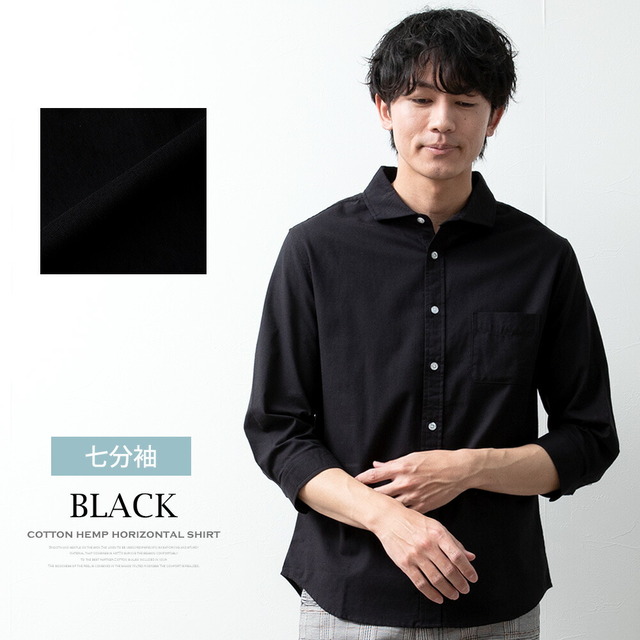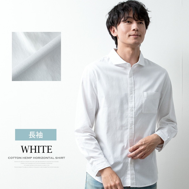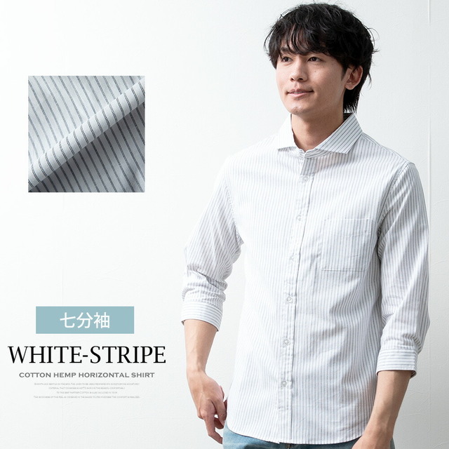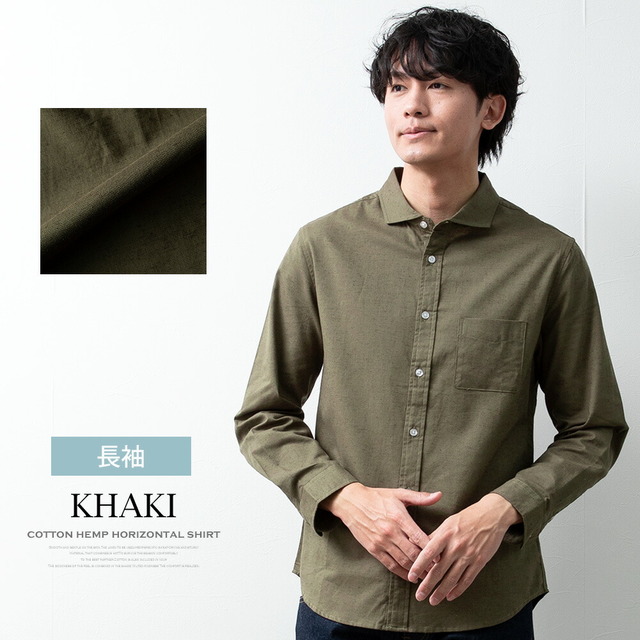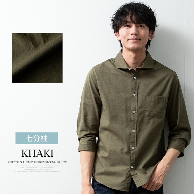 メンズ シャツ 長袖 7分袖 リネン おしゃれ 春 夏 涼しい 綿麻シャツ ストレッチ コットンリネン 無地 綿麻 191ブルーストライプ 182サックス カーキ ホリゾンタルスクエア シンプル 白 クールビズ 父の日ギフト 74カーキ 01ホワイト