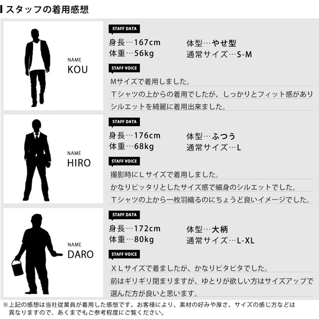 - 175cm65kg ユニクロでは物によりMかL 今回Lサイズを購入 ぴったりでした。細身なんで大きめサイズを選択したが良いと思います。 商品と一緒にマスク一枚がオマケで添えられていました。気持ちが嬉しいですね。また機会があれば利用したくなります。ありがとうございました。