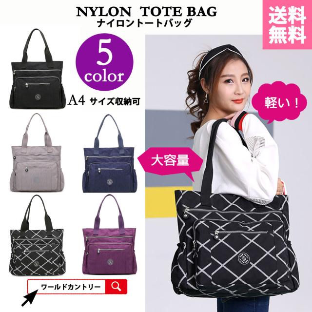 トートバッグ レディース ナイロン 軽量 多機能 トート 大きめ ナイロンバック 縦長 かっこいい ファスナー付き エコバッグ マザーズバック エコバック a4 横 ナイロントート レジカゴバッグ マザーズバッグ 大学生 pcバック ブランド レディースバック 大容量 仕事用 バッグ