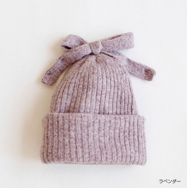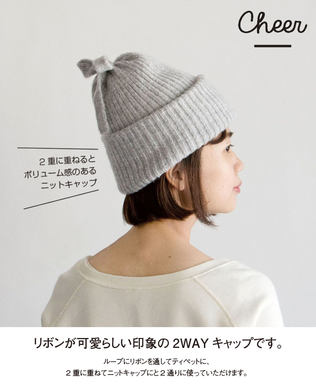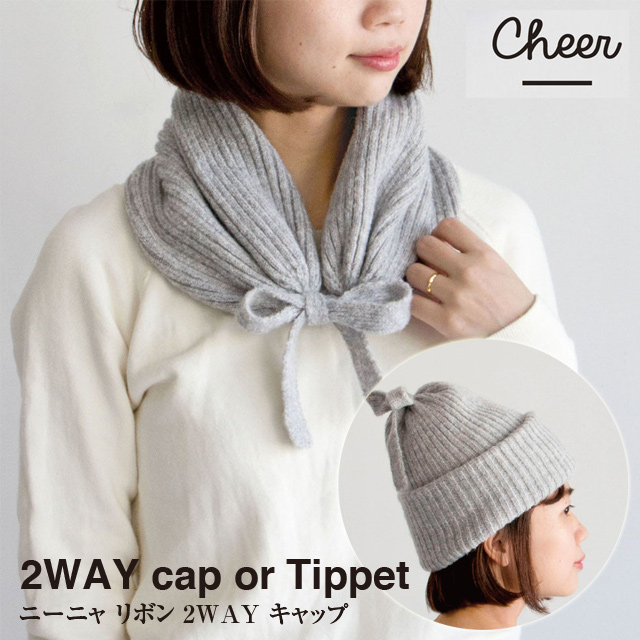 【Cheer】ニーニャ リボン 2WAY キャップ 151861【レディース ニットキャップ ティペット スヌード 防寒】グレー ダークグレー ラベンダー