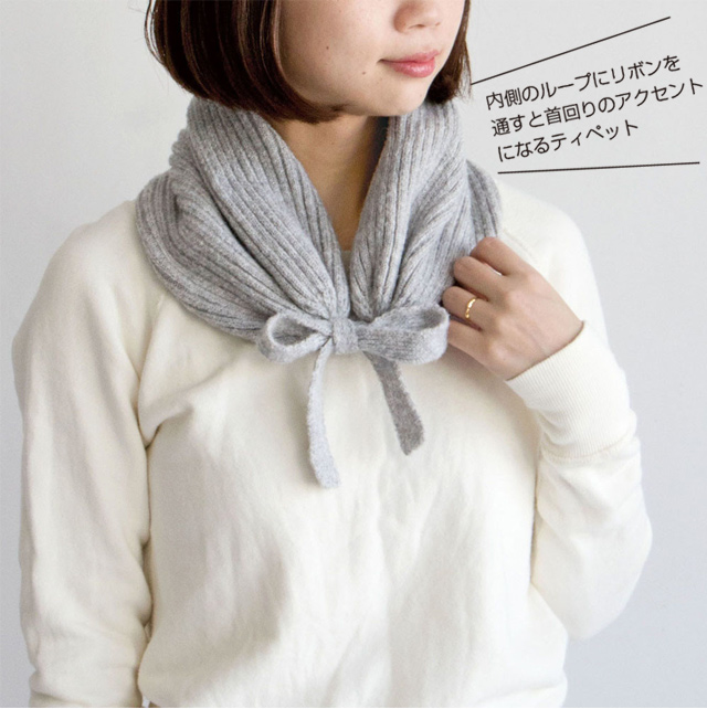 ループにリボンを通してティペットに、2重に重ねてニットキャップにと2通りに使っていただけます。 |