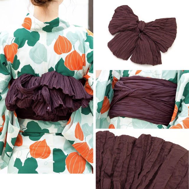 帯は、体に巻いて後ろで結ぶタイプの兵児帯です。