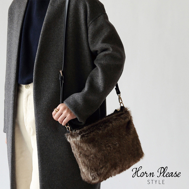 【Horn Please】ショルダー ワイドバッグ ファー 107475【クリスマス xmas バッグ バック スクエア クラッチバッグ カゴバッグ レディース ファッション もこもこ 送料無料】(ブラック・ブラウン)