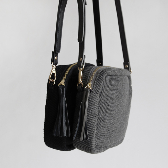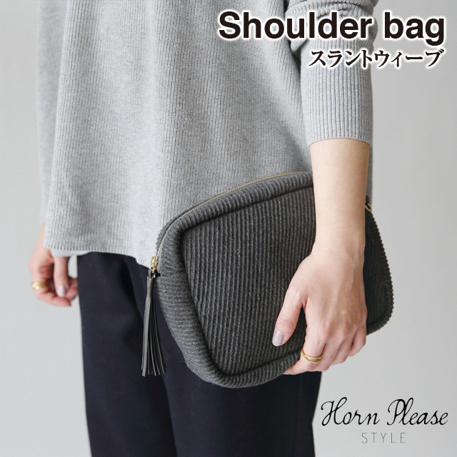 【Horn Please】ショルダー バッグ スラントウィーブ 【バッグ バック ポーチ 綾織り レディース ファッション 送料無料】(ブラック・グレー)107471