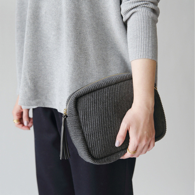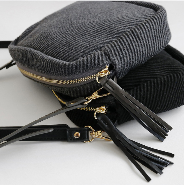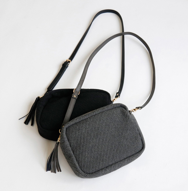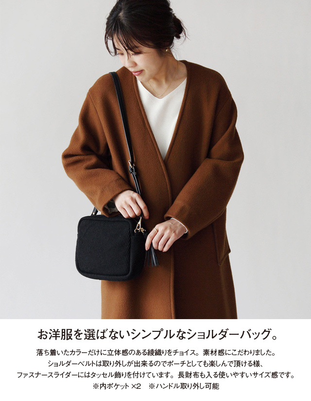 ショルダーベルトは取り外しが出来るのでポーチとしても楽しんで頂ける様、ファスナースライダーにはタッセル飾りを付けています。 長財布も入る使いやすいサイズ感です。
