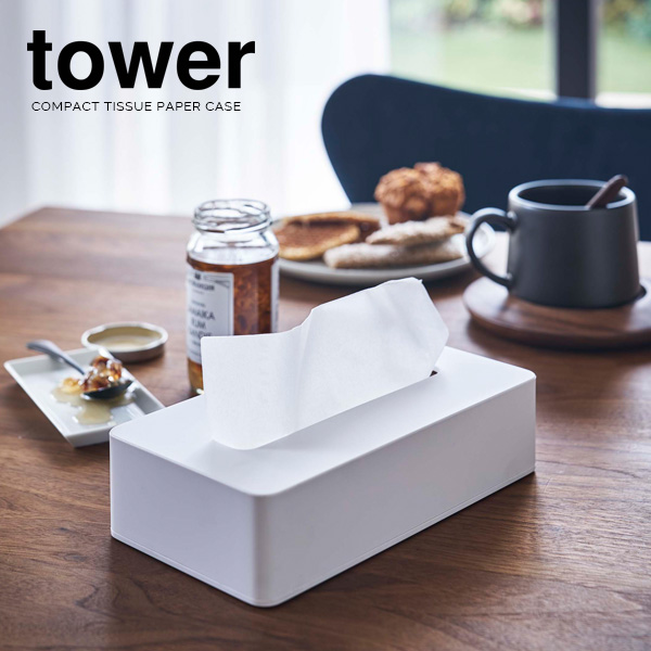 山崎実業 ティッシュボックス tower タワー コンパクト ティッシュケース ホワイト 5092 | ティッシュ ケース 箱なしティッシュ専用 ソフトパック コンパクト スリム 薄型 シンプル エコ 詰め替えティッシュ