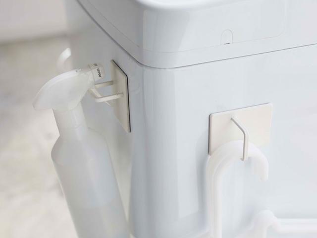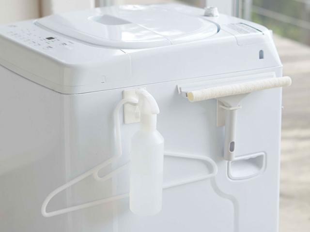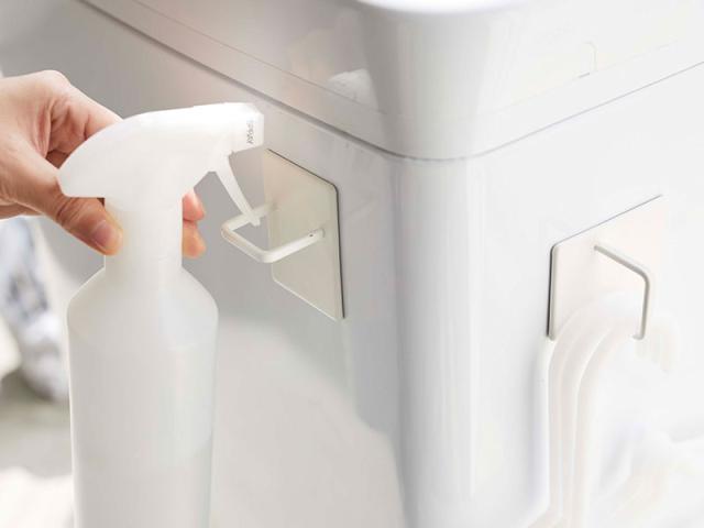 洗濯機や冷蔵庫、磁石のつく場所ならどこでもスプレーを設置できる、マグネット式のスプレーフック。