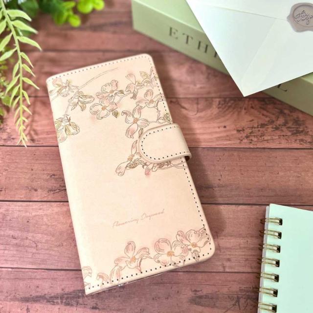 Android スマホケース ハナミズキ 手帳型 全機種対応 本革 革 皮 ヌメ革 牛革 レザー OPPO Reno5 A OPPO Reno3 A Android One S8 シンプルスマホ6 らくらくスマートフォン LG V60 ThinQ xiaomi mi URBANO アンドロイド ケース