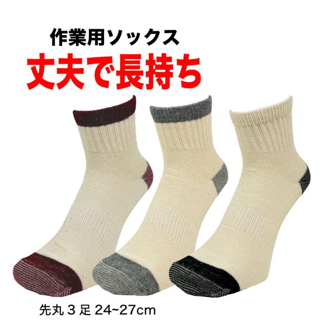 靴下 メンズ くるぶし 作業用 3足セット ショート丈 先丸 つま先カラーアソート 25cm-27cm 富士手袋