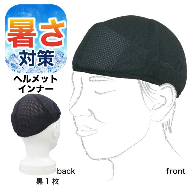 インナーキャップ 冷却帽子 汗止め 高吸水シート内蔵 ヘルメット インナー メッシュ 熱中症対策 グッズ 気化熱 ひんやり 作業用 バイク 自転車 スポーツ ブラック 1枚