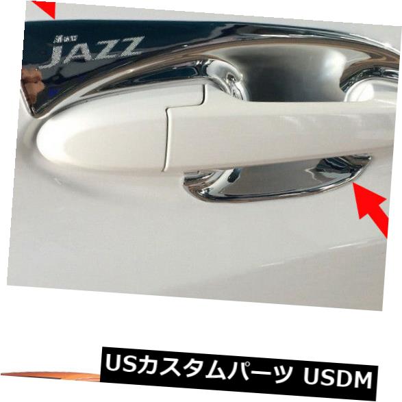 ドアハンドルボウルインサートカバークロム4PcはホンダジャズフィットGK5 2014 2015 17に適合 Door Handle Bowl Insert Cover Chrome 4Pc Fits Honda Jazz Fit GK5 2014 2015 17